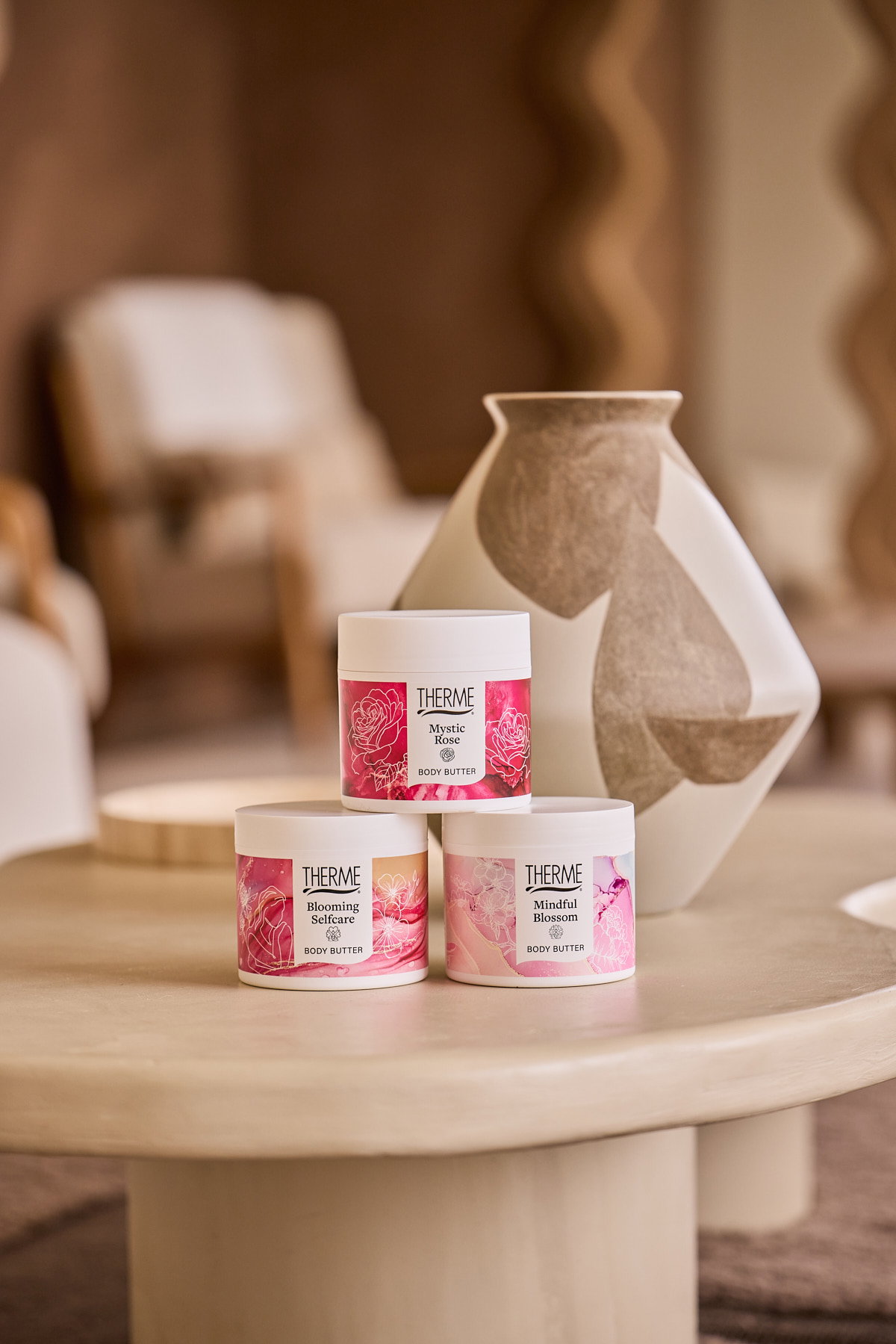 Voor Therme ontwikkelen we gemiddeld zes keer per jaar campagnefotografie en video. De content wordt ingezet voor social media, website, advertising en in de winkels, en vormt een doorlopende visuele lijn binnen het merk.